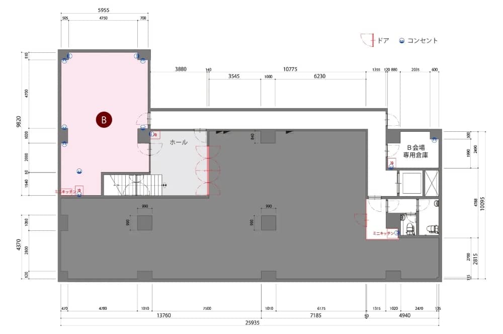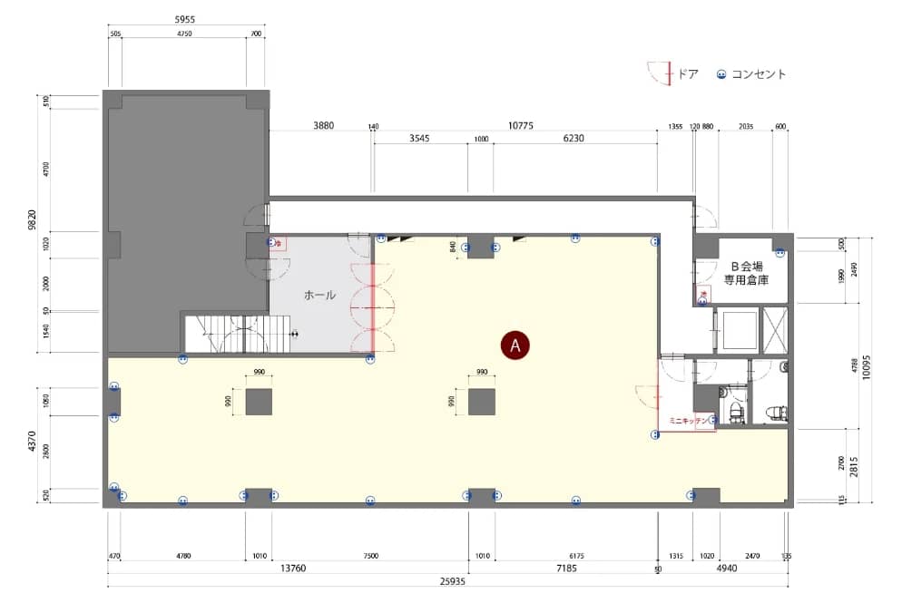 B1 SPACE B | 天井が高く、コンパクトでリーズナブルな会場です。 | 51.80 m²+6.99㎡ | 40,000 円/日 |